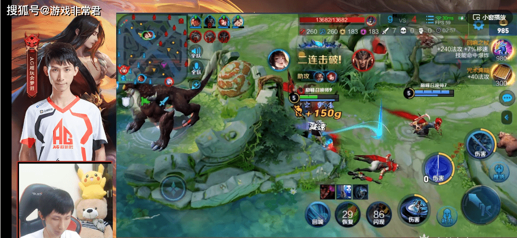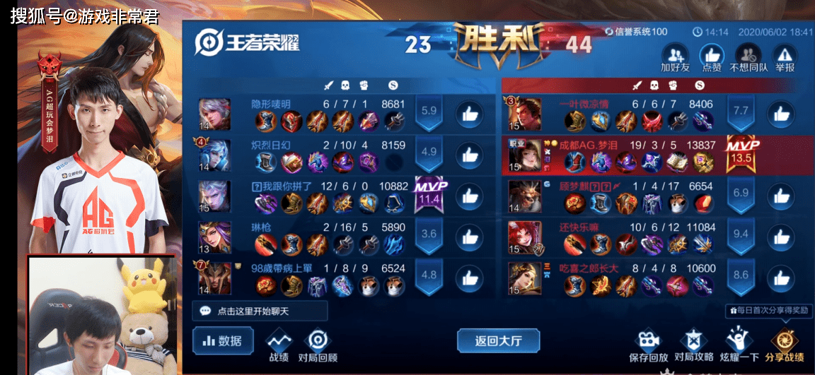 接下来三路游走,尽收人头,把对面堵在泉水里,露头就猛锤。队友都看呆了,并惊讶询问梦泪怎么在皮肤没上线时就能玩到这么帅气的新皮肤,梦泪骚话回复:人长得帅气,官方白送。