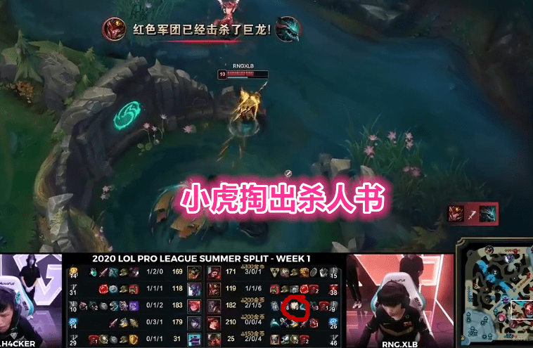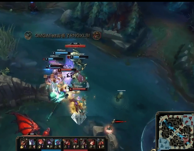 19分钟小虎卡牌交出大招闪现黄牌,SMLZ闪现等死。21分钟RNG五人集齐中路,交出三个大招强杀SMLZ,再追死OMG中辅,拿下大龙,Uzi开玩笑:“RNG能送的人都走了,就算李元浩再送三次也不会输!”