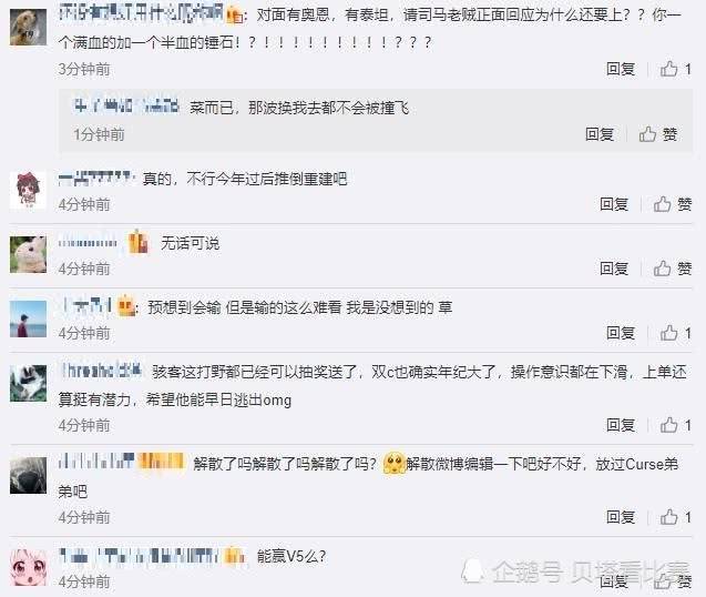 除了中野两人之外,下路SMLZ也受到了批评,也有很多人表示SMLZ的年纪也大了,一直吃对面的技能,根本反应不过来了,操作和意识都不行了,OMG除了上单curse还不错有发展前景外,其他人都该换掉了。更有粉丝直言:你们这个赛季能不能赢V5都是个大问题了。