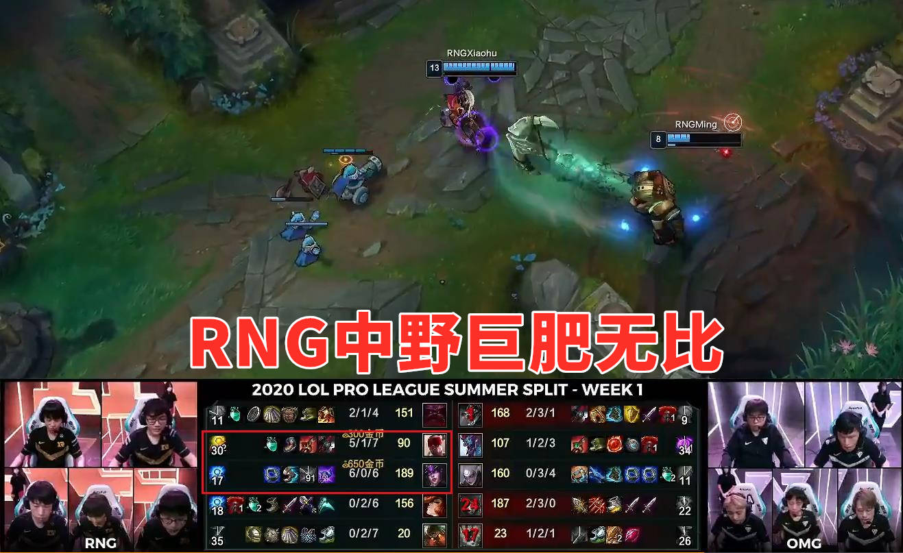 随后,比赛进行到中期,RNG的中野在前期拿到巨大的优势,一个6-0一个5-1。