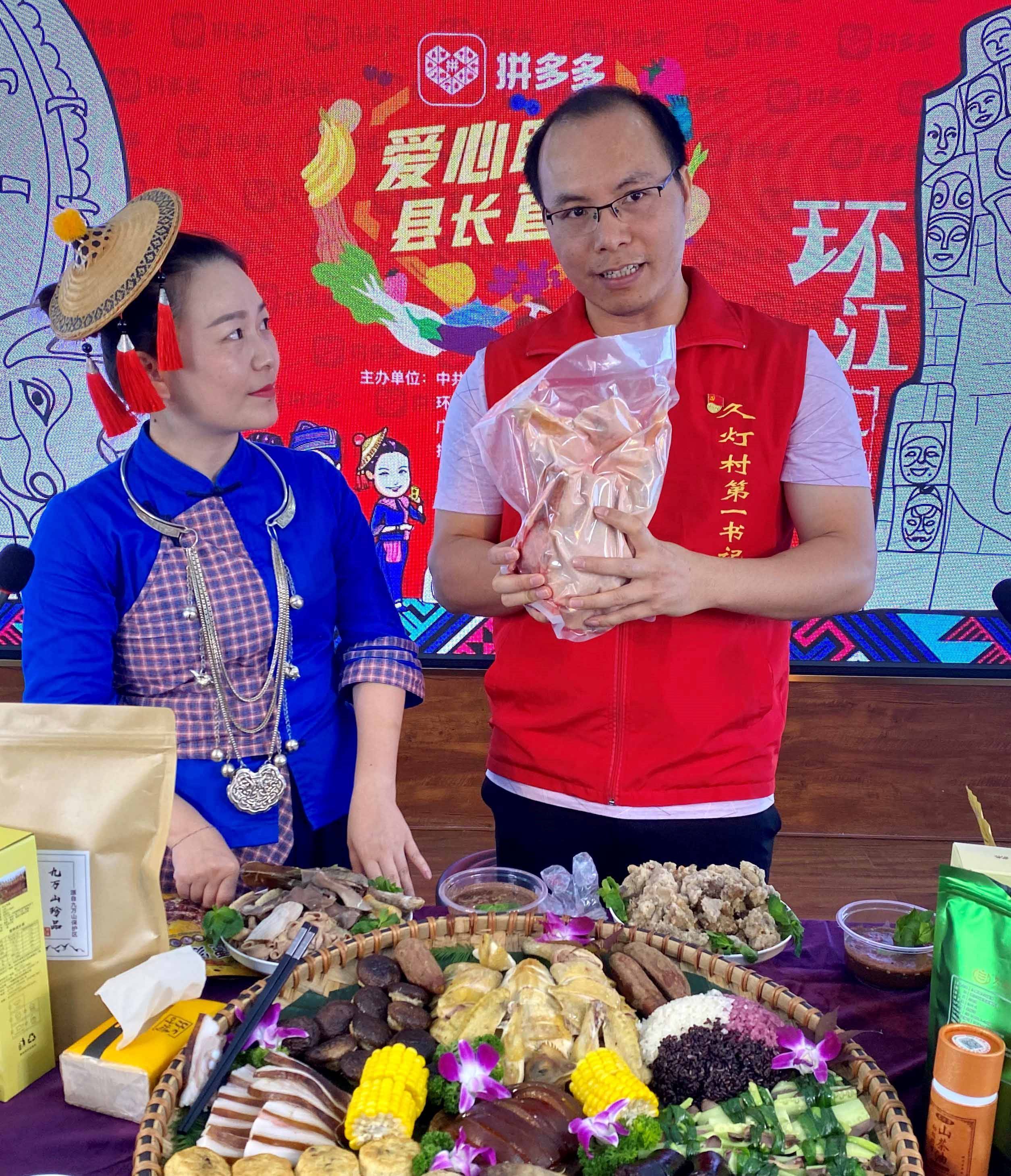 “世遗环江,多彩毛南!这里是全国唯一的毛南族自治县,也是世界自然遗产地。这里不但有好山好水,还珍藏着非常多的绿色原生态农产品。”6日上午10时,环江毛南族自治县(以下简称“环江县”)人民政府县长黄炳峰穿着特色的民族服饰走进拼多多直播间,向广大网友推介环江的特色食品。