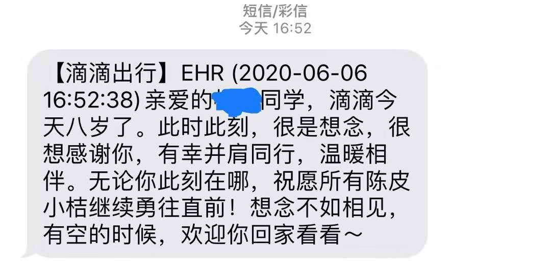 一位滴滴离职员工向记者展示了周六前东家发给自己的短信。短信写道:“想念不如相见,有空的时候,欢迎你回家看看。”