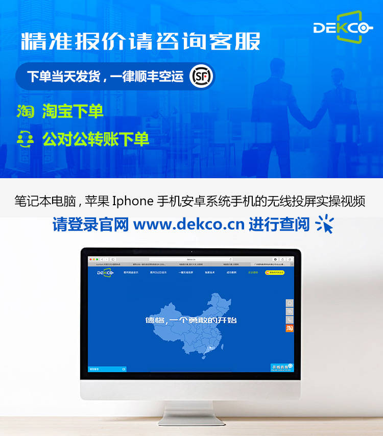 无论您的前端是投影机,超大屏幕的液晶显示器,液晶电视,液晶拼接屏,触摸一体机,甚至小间距LED屏都可支持结合德恪usb一键无线投屏搭配使用,”您看看下面这些图片: