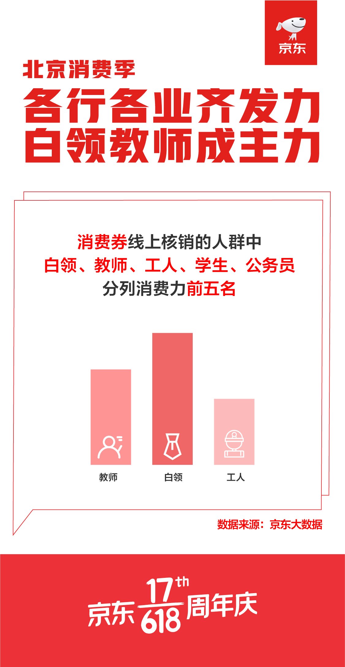 从职业来看,白领、教师、工人、学生、公务员分列消费力前五名。