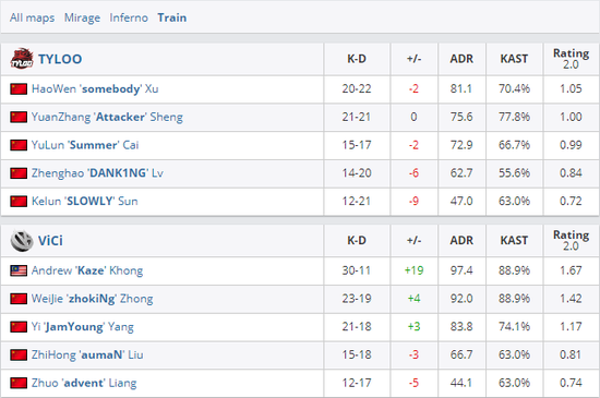 来到图三Train后,由于刚刚加时取胜胜利手感渐佳的VG打的非常大胆主动,将TYLOO的进攻悉数瓦解。多次默认掉人的TYLOO根本无力在后续展开战术,常常是以少打多无力补枪。在这张对配合要求极高的地图上,VG很快便以一个较大的分差拿下赛点,纵然TYLOO在下半场凭借个人能力连斩数分,但容错率太低最后还是输掉了本张地图。