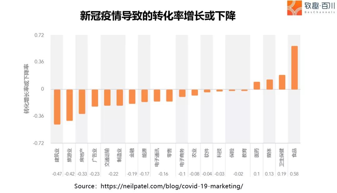 除了视频、医疗、媒体行业以外,其他行业的转化率都发生了巨大下降。