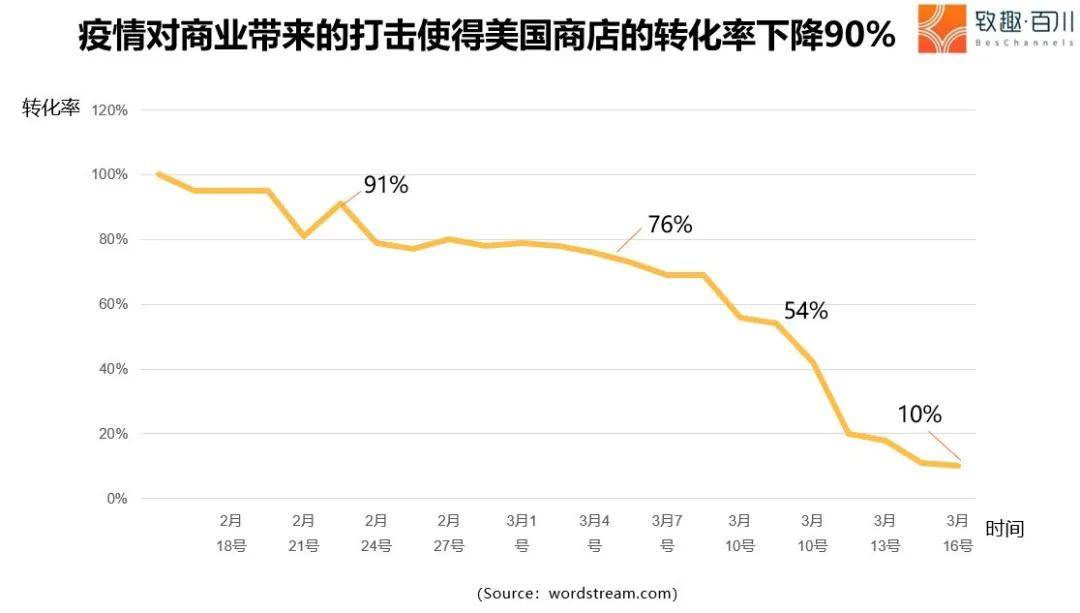 3月底的广告转化下降了90%,美国零售商的店内访问量急剧下降。