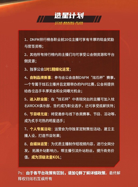 这次的《地下城与勇士》手游的发布,无疑是在DNF原来的基础上再填一批新生代游戏玩家。而炫石互娱也决定继续打造出第二波顶级流量主播,基于目前已经集结的3000万勇士,相信在游戏最后的优化完成后,全新的人气职业,手游专属职业技能,会迅速涌现出大量的技术和娱乐性玩家。炫石互娱为大家准备了500万的造星资金!将全力帮助直播的DNFM勇士开启全新的直播生涯!