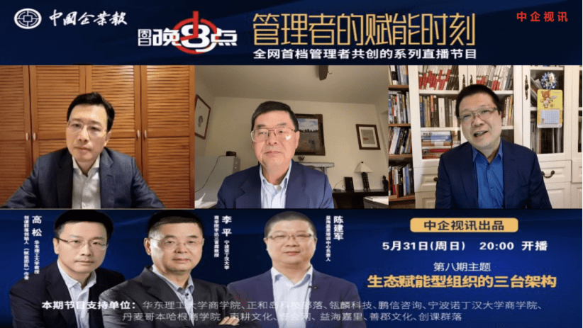 "'三台架构'很可能是我们中国企业为全世界提供的原创贡献,率先有效解决'如何平衡企业效率和灵活'和'如何既聚焦眼前又放眼未来'。这是超越西方企业90年代开始尝试的‘双台’架构(即依据价值链将企业分成销售导向的大前台与供应导向的大后台)的全新组织架构,以分布式三台模式构建未来的生态型企业组织。" 李平说。