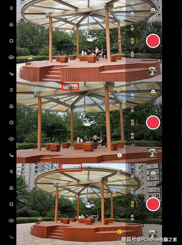 普通模式、超级防抖和超级防抖Pro模式画幅对比