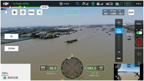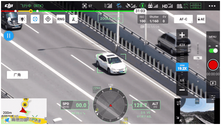 3、借助禅思 H20 系列的激光测距功能,用户在相机画面或地图上点选目标即可获取其位置信息;在面对人、车、船等移动目标时,可自动定位跟踪。