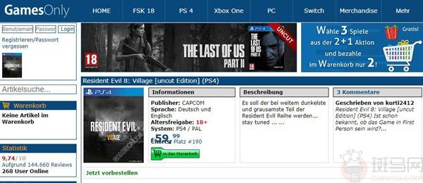 近日据推特用户Ken Xyro透露,德国游戏零售商GamesOnly上架了PS4版《生化危机8》商品页面,本作被描述为《生化危机》系列史上最黑暗与残酷的一作。从PS4版封面可以看到,本作副标题就是之前传闻的“村庄”。此外,该网站还透露《生化危机8》将有未删减版。