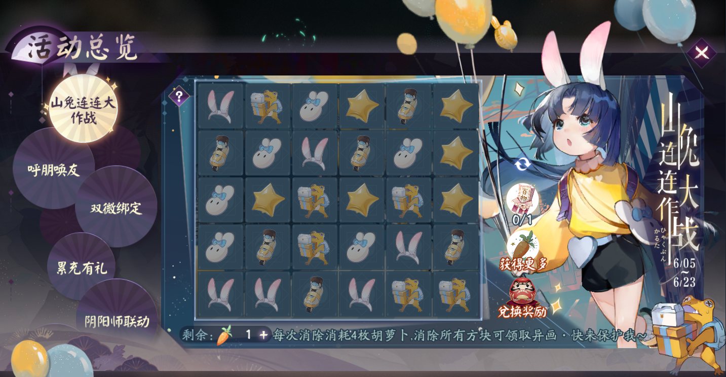 山兔连连大作战 赢异画卡十五连抽