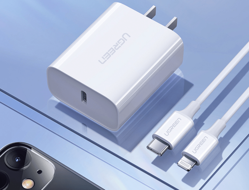 如绿联家的18W PD快充套装,获得了苹果官方的MFi认证,可为拥有快充功能的iPhone机型实现快充,30分钟充满50%以上的快充体验媲美苹果原装快充。