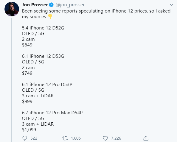 有一个爆料人士却一爆成名,此前Jon Prosser多次透露iPhone SE2、MacBook Pro等新品的信息,与发布的真机相差无几,爆料准确率几乎达到100%。最近,Jon Prosser又在推特上爆出了iPhone12的相关内容,可信度应该也是相当高的。