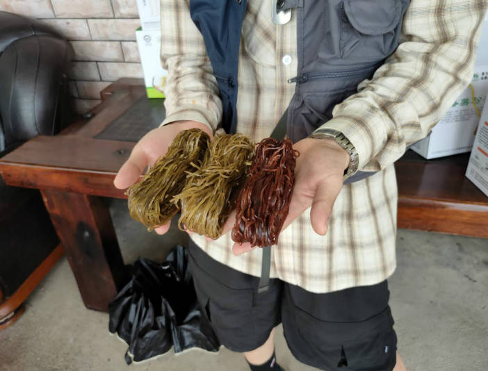在塔岭村,这个“特色产品”是“粉签”。塔岭村的番薯种植面积达1000余亩,每值收获季节,这些番薯则会被当地“五狼山种养专业合作社”收购,通过洗净、晾晒烘干、打磨等工序最后制成薯粉,即“粉签”。