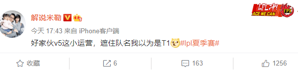 米勒在看到了V5战队和OMG战队比赛之后也发表了自己的看法,盛赞V5战队:好家伙,v5这小运营,遮住队名我以为是T1。拿T1战队来对比,可见V5获得认可的程度有多高。