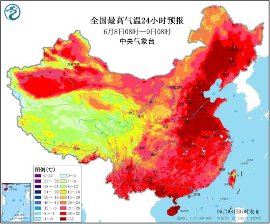 近日,北方多地发布高温黄色预警,内蒙古东南部、吉林西部、辽宁西部、河北东部、北京、天津、山东中部等地部分地区最高气温37~39℃,内蒙古东南部局地可达40℃以上。