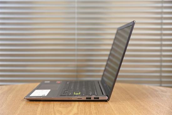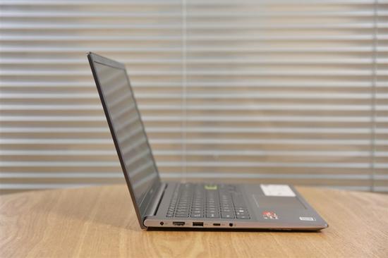 机身左侧有一个HDMI、一个USB3.2 Gen1 Type-A、一个USB3.2 Gen1 Type-C、一个3.5mm耳麦合一接口以及一个圆口电源插孔。