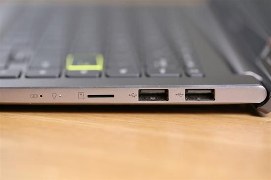 比较难得的是,灵锐14笔记在14mm的厚度上集成了3个全尺寸的USB-A接口,另外还有一个Type-C,接口数量之多在轻薄本中也算是少有。