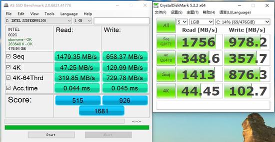 在AS SSD Benchmark中,这块660P 512GB的总分为1681,顺序读写超过1400MB/s、650MB/s,4K随机读取47MB/s,随机写入129MB/s。