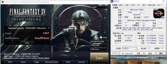 在最终幻想15 BenchMark测试中,灵锐14的分数为1457,与RedmiBook 16锐龙版相当。