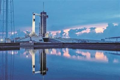 载人“龙”飞船与“猎鹰9号”火箭在发射台上