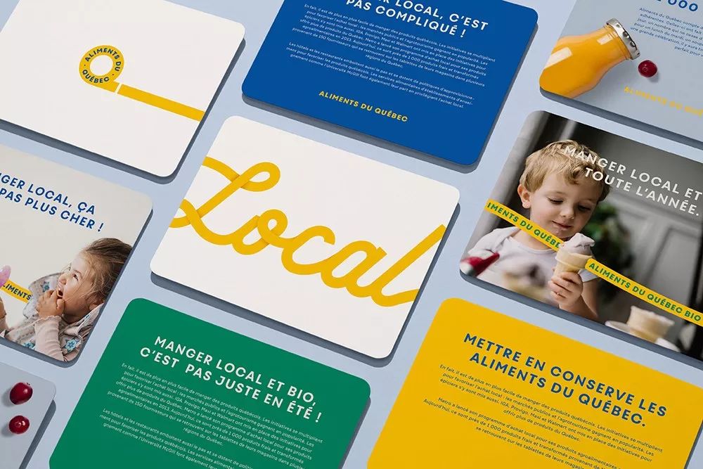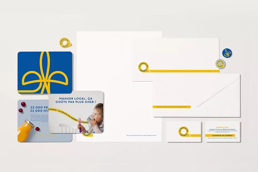Aliments du Québec由魁北克省农业食品行业的成员于1996年成立,是一个非营利性组织,其宗旨是推广原产于魁北克省的原材料和预制产品,最终的目标是鼓励消费者购买本地产品,并为组织成员公司提供一个网络来推广和分销他们的产品。最近,他们推出了一个由lg2设计的新视觉形象。