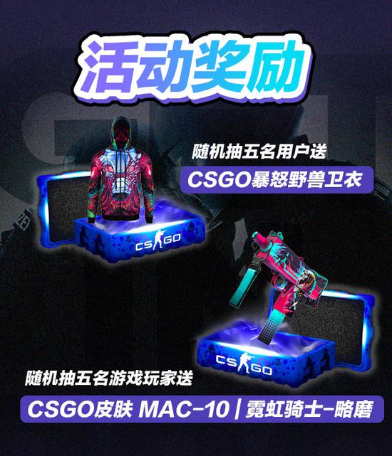 在参与话题的所有游戏玩家中随机抽取5人,每人获得CSGO隐秘级武器皮肤MAC-10 | 霓虹骑士(略磨)一件
