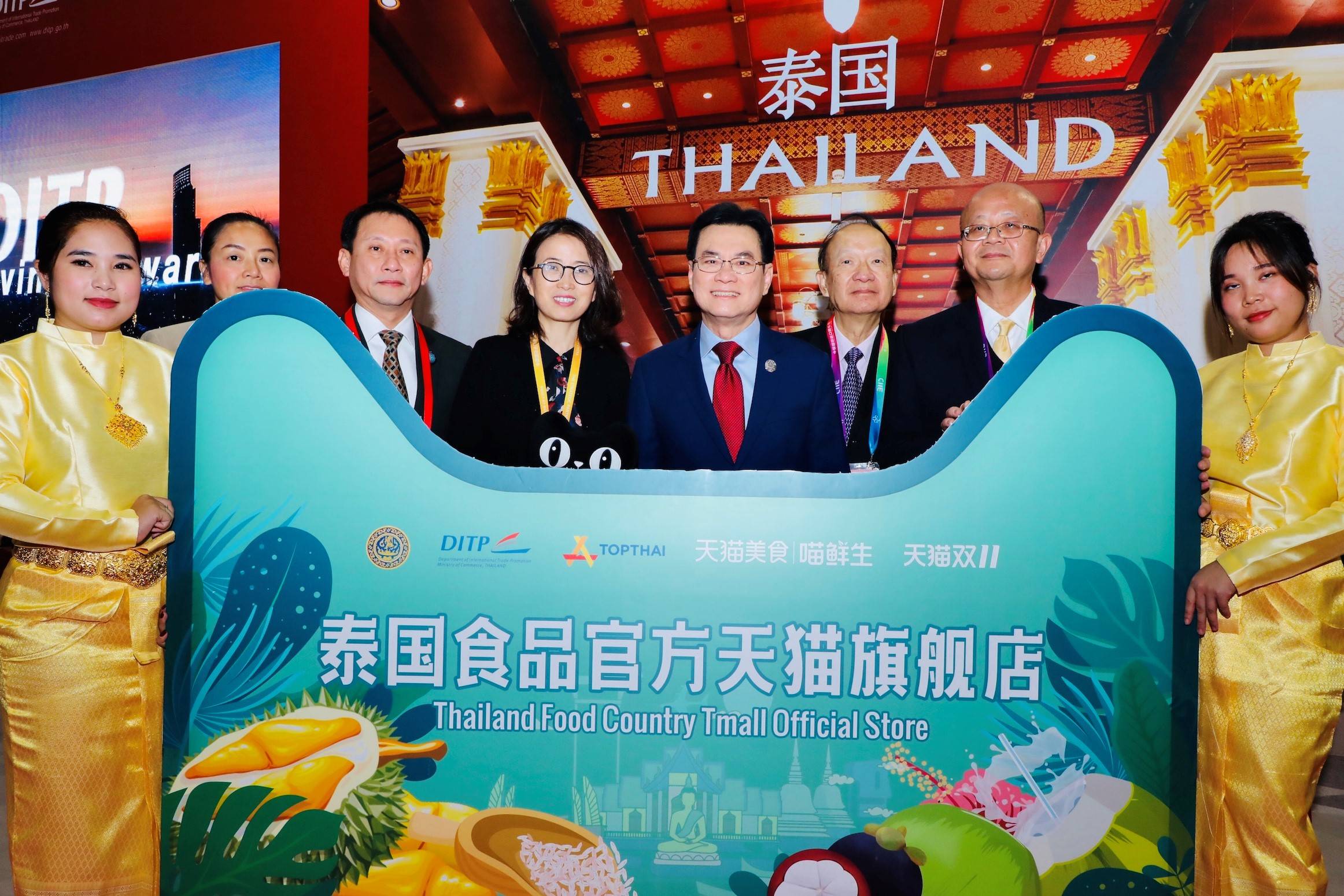 泰国副总理兼商务部长朱林(左5)和天猫食品生鲜总经理朱霞(左4)