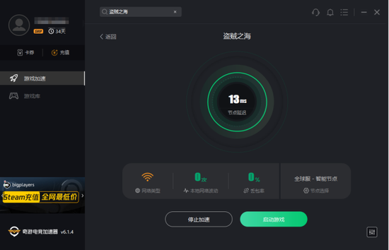 据悉,奇游加速器最新独创了锁区服匹配技术,只需安装客户端,搜索“盗贼之海”分区,选择你想要玩的区服,点击加速即可完成锁区匹配: