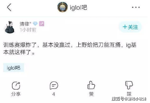话不多说,原本以为在夏季赛来临之后,IG会有所动作,起码振作起来,打出点世界冠军的样子。不管怎么说,夏季赛关乎世界赛的门票,咋看应该重视一下吧?对不起,我IG虽然想重视,但现在我可能没能力。最近IG的贴吧中,有网友爆料IG在最近的训练赛上状态奇差,基本就没赢过,感觉和季中杯的训练赛上一个状态,如果这位网友爆料的是真的,那IG这个夏季赛怕是站不起来啊。
