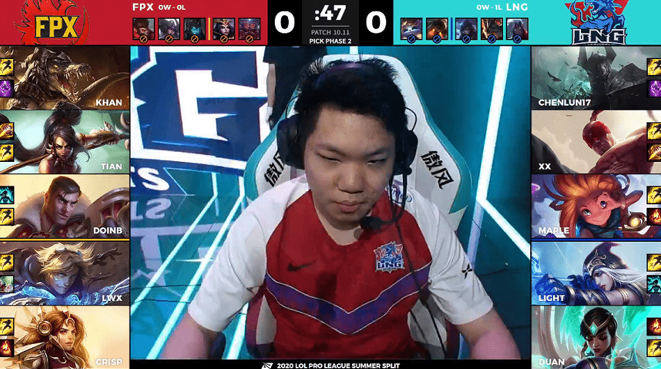 6月9日LPL夏季赛,FPX对战LNG,首局比赛FPX拿到了一套3poke阵容,doinb选到了最近直播中经常练习的杰斯,小天也拿到了豹女,这也是doinb时隔1095天再次使用到杰斯这个英雄,而LNG则是选择寒冰卡尔玛的下路强势对线组合,counter位上chenlun17选择用铁男应对汉子哥鳄鱼,xx职业生涯首次拿出盲僧!