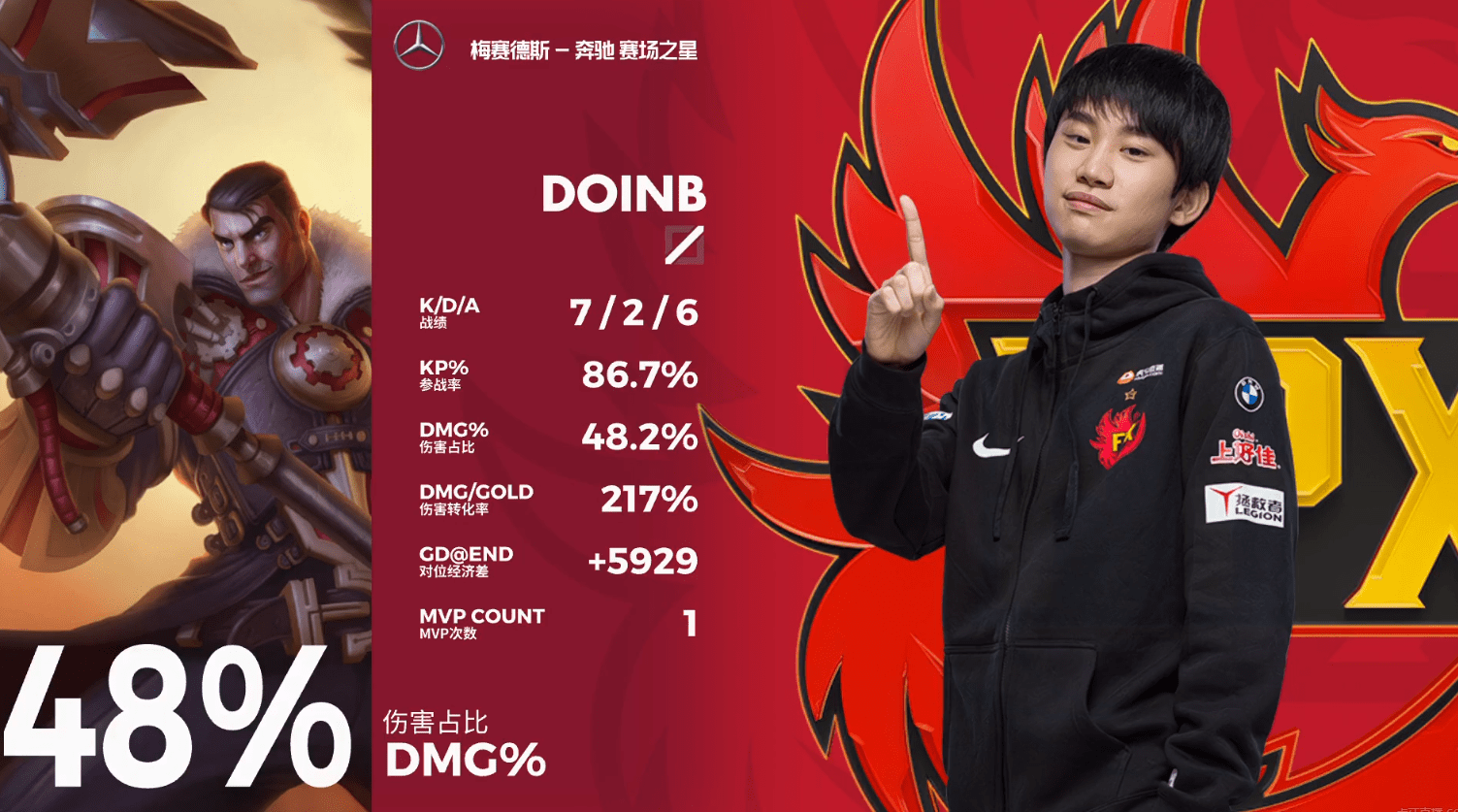 而这局无解肥的doinb杰斯将伤害给拉满了,时隔1095天再次在比赛中选用这个英雄就拿到了MVP,这两天只玩杰斯鳄鱼塞拉斯,真就玩啥选啥,不过排位天天守家,比赛把把乱杀,有你的硬币哥!