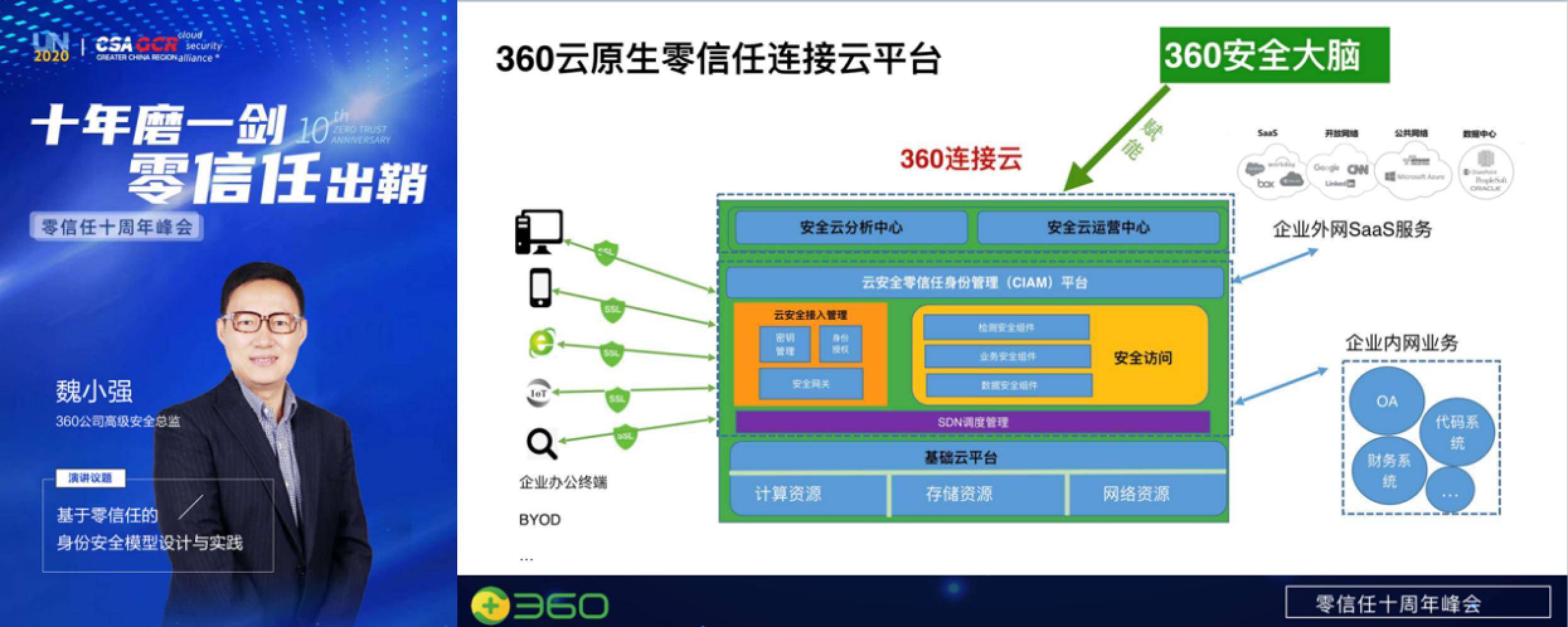 “连接创造价值,安全护航连接。” 在零信任十周年峰会上,360集团云安全研究院高级安全总监魏小强分享了有关零信任的身份管理与安全连接架构的话题。零信任峰会由云安全联盟大中华区主办,联合国UN2020指导,于6月5日圆满召开,360为主要承办单位之一。