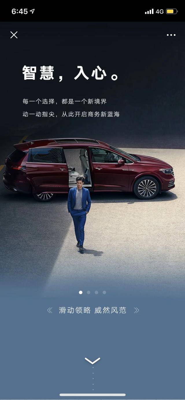 当然,大部分用户可能看不完长达几小时的直播,会错过一定的产品信息。于是上汽大众选择次日让威然再次“现身”朋友圈。借助强互动的滑动式卡片广告将产品功能元素融入其中——引导用户滑动屏幕,顺带展示了双侧电滑门的产品点,配合外层素材点击择优的投放模式,让广告被更多感兴趣的用户看到。用户进入广告便来到了留资入口,填写信息即可试驾,滑动页面还可以查看更多的产品亮点,更能跳转到官网,360度互动看车,自选配置。巧妙的互动设计,快速的用户留资,环环相扣的传播链路,可谓将营销做到了面面俱到。