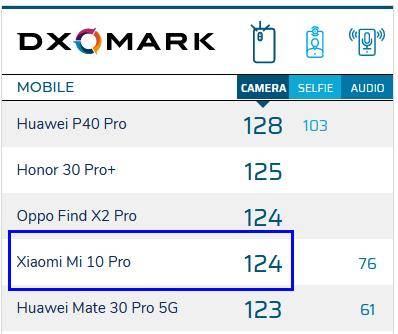 一亿像素超高清的解析力、双OIS防抖的全焦段四摄组合,也让小米10 Pro跻身顶级拍照手机的行列,Dxomark上的得分高达124分,得分排名和OPPO FindX2 Pro一致,并列第三。