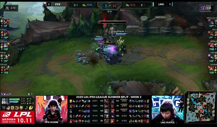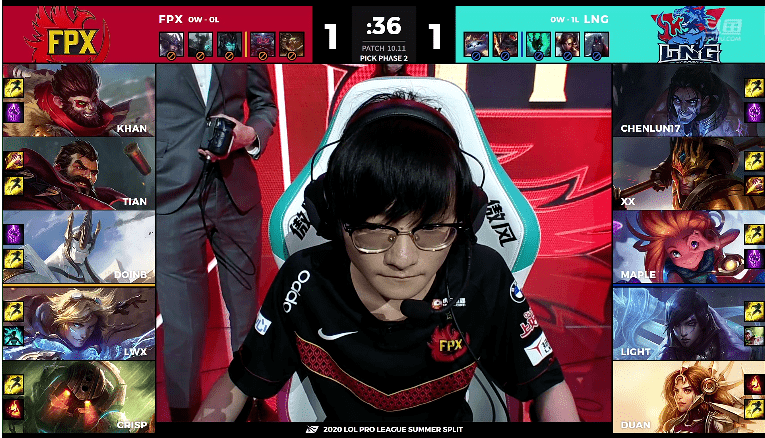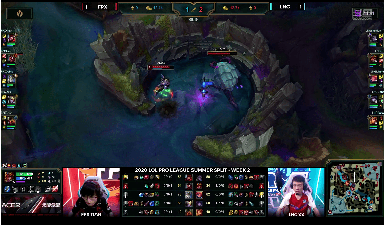 双方进入决胜局,蓝色方FPX,红色方LNG。