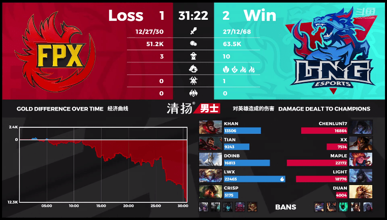 原标题:英雄联盟:全员发挥出色,LNG让一追二,拿下FPX