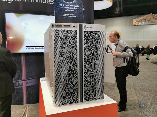 很快,Cerabras和美国能源部达成合作,与其属阿贡国家实验室合作、基于WSE芯片打造了一套“CS-1”,15个标准机架高度(约66厘米),性能相当于一个拥有1000颗GPU的集群,而后者需要占据15个机架空间,功耗也要500千瓦,同时相当于Google TPU v3系统的三倍还多,但是20千瓦的功耗只有其1/5,体积则只有1/30。