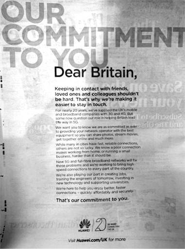 编后语:关于《华为在英国多家主要报纸刊登承诺