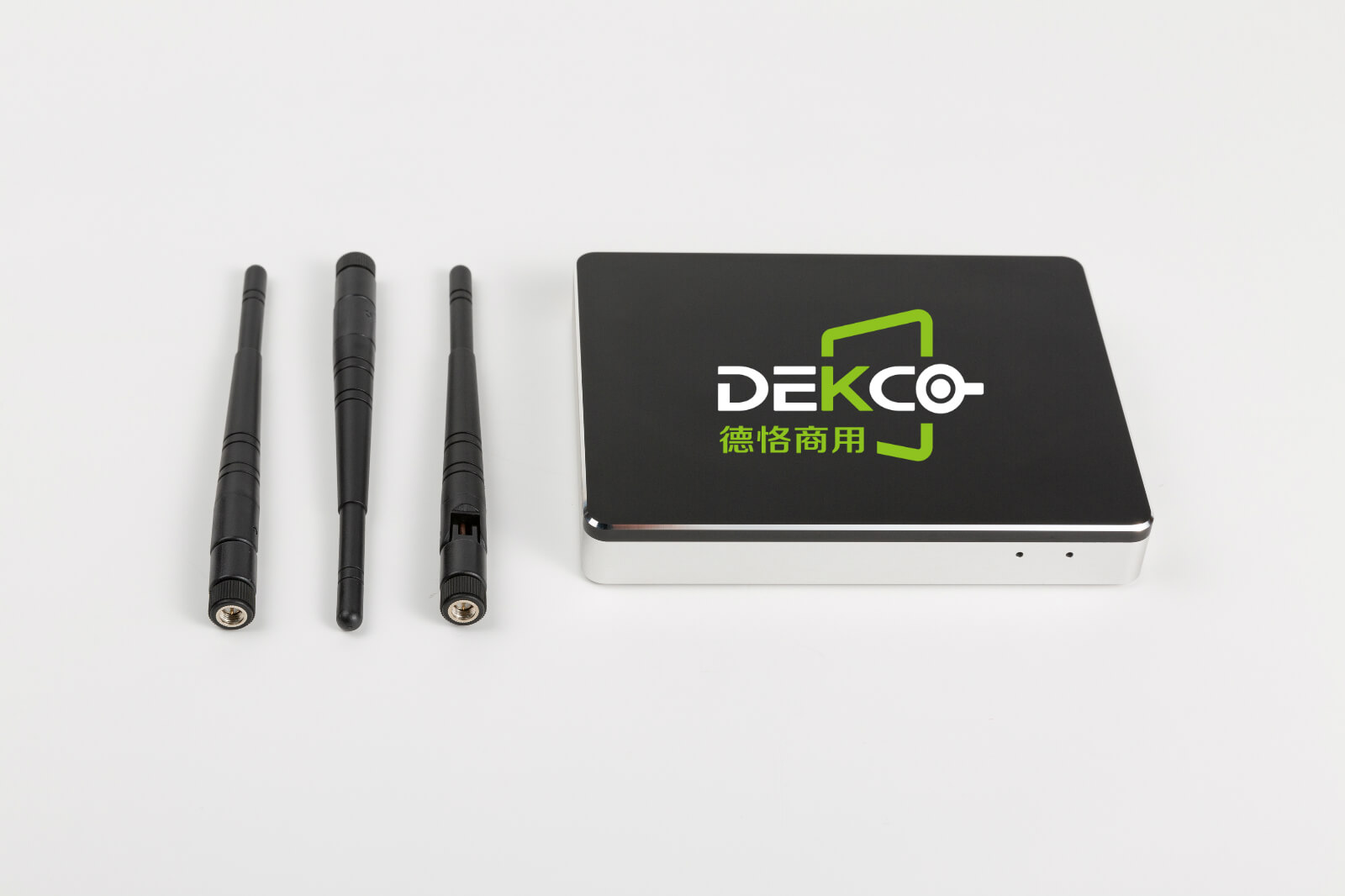 部分用户误认为,只需为笔记本购买单独对应的USB传屏器,就可以实现传屏功能了,并不是这样的,还需要配套这么一个无线投屏盒子。(大家看到了有HDMI信号输出,您只需讲HDMI线的一端接入无线投屏盒子,另一端接入显示终端设备,就完成准备工作了)也就是小编经常所说的:“一个盒子+一个按键+3根天线=德恪USB一键无线投屏,小编接下来要给大家展示的是德恪USB一键无线投屏解决方案商务款,型号【DK-200LC】最高支持4K分辨率输出。如下图: