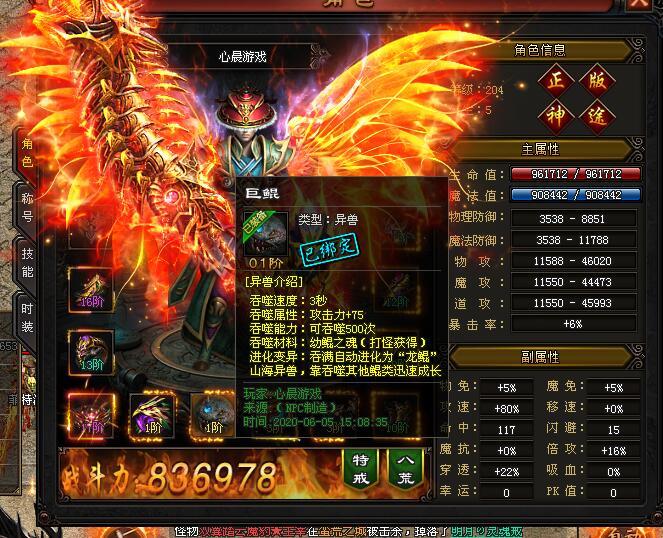 独家八荒神器:总共十二种特色神器,神器和其他单职业完全不同,各个威力巨大,真正的神器属性。属于可成长型,回收装备可以获得成长值,而且神器有专属神器属性。