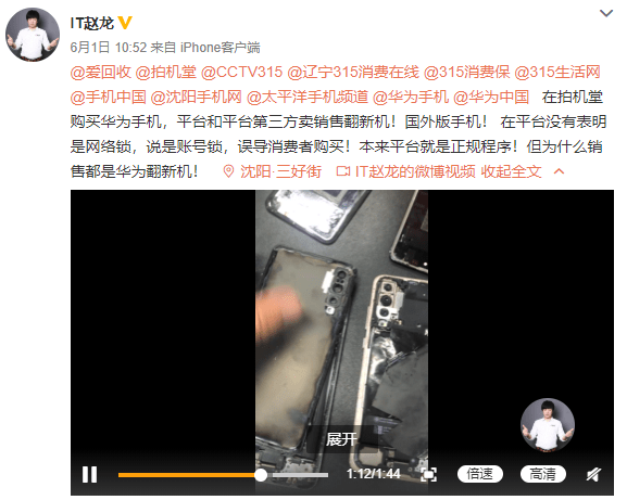 从微博认证信息看,这位名叫IT赵龙的网友还是资深数码人士,没想到圈内人士也被爱回收坑了。