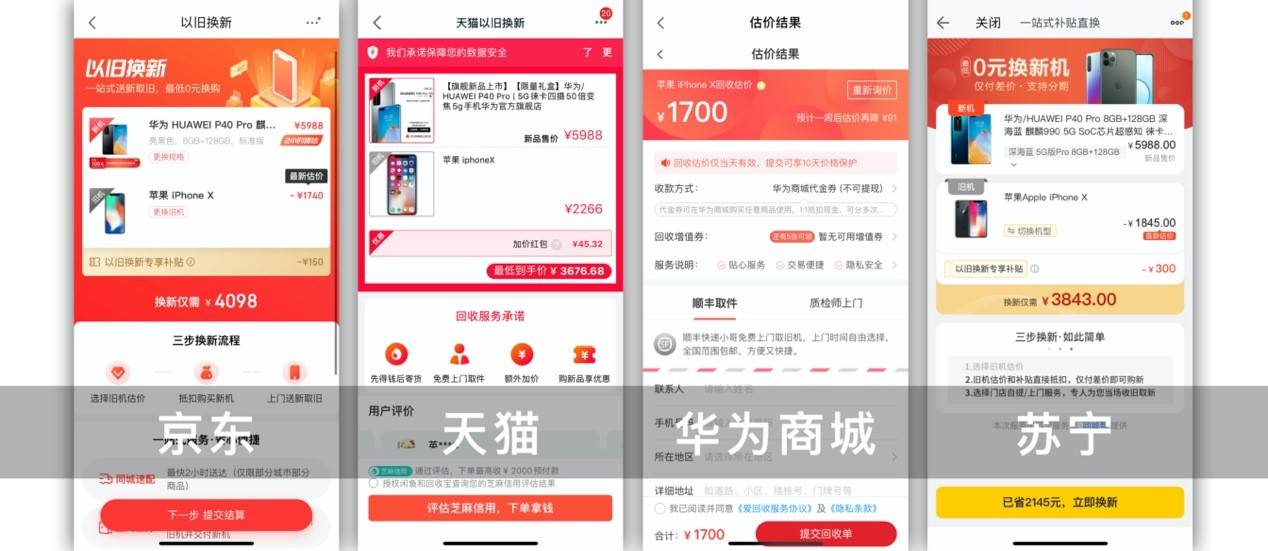 此前网上流传的一份华为P40 Pro的以旧换新测评,发现作为华为官方商城,其合作的爱回收在旧机回收价格上反而是最低的,和天猫、京东、苏宁等几大电商平台的以旧换新相比没有任何优势。