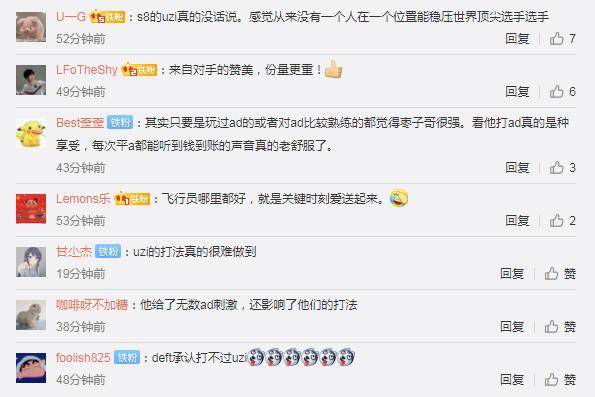 U一G:s8的uzi真的没话说。感觉从来没有一个人在一个位置能稳压世界顶尖选手选手。