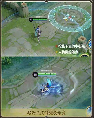 赵云释放三技能时,人物位移距离是600(脚的落点),实际攻击距离是650(枪扎下去的中心点)这样的距离差设计,是为了更好的匹配人物持枪扎入地面的动作表现。