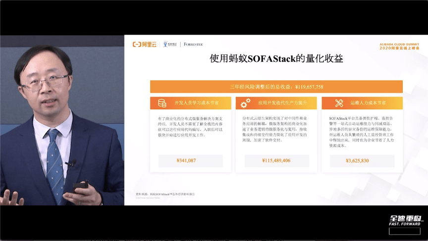 6月9日,在2020阿里云线上峰会上,蚂蚁联合全球知名研究机构Forrester发布SOFAStack总体经济影响报告(TEI®),报告数据显示蚂蚁金融科技帮助金融机构3年节省超过1个亿,目前已广泛服务于人保健康、南京银行、浙商证券、网商银行、国泰产险等数十家金融机构。