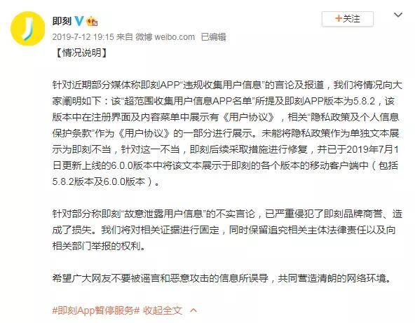 宣布暂停服务的当天,即刻官方也曾对上述行为进行回应,称已在6.0.0版本中对相关问题进行修复,否定了“故意泄露用户信息”的不实言论。