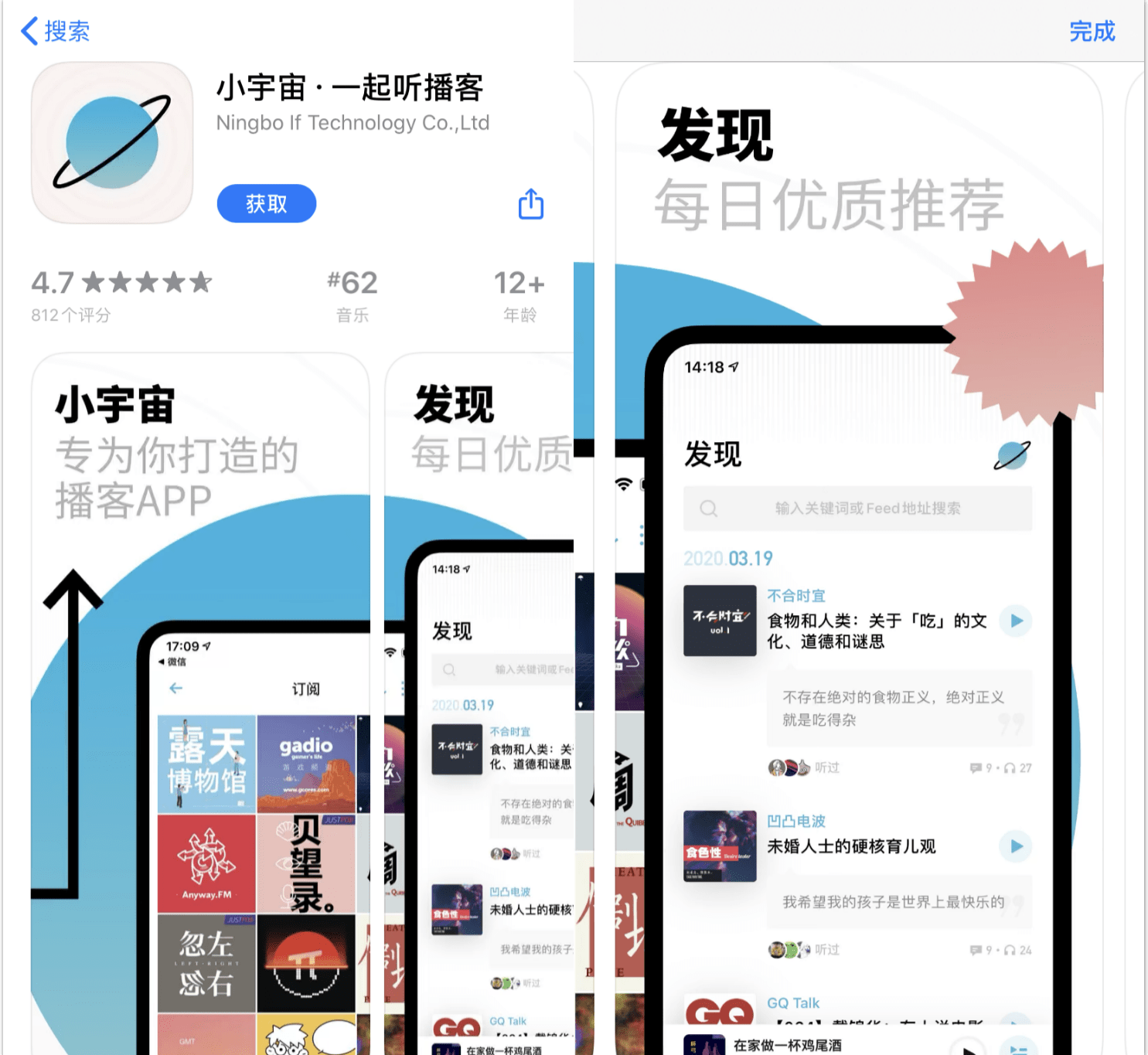 • 3月29日,即刻出品一款名为“小宇宙”的播客App并正式展开依托于邀请码的内测,目前多数主流中文播客节目已在小宇宙App上线。
